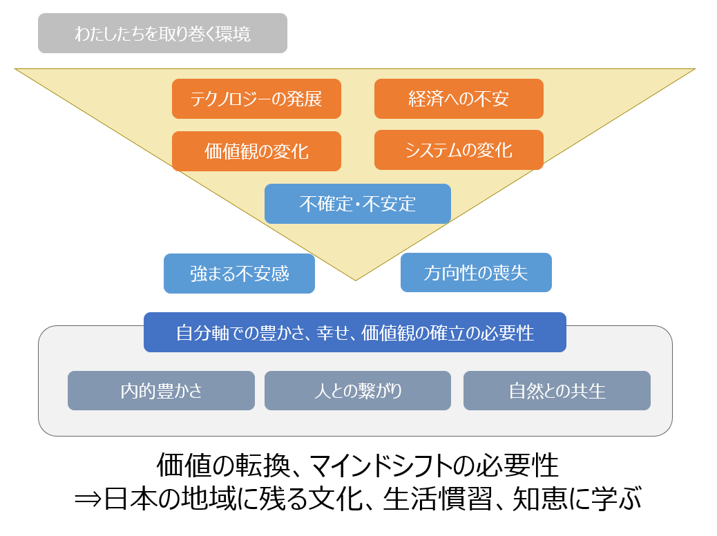 社会課題・自己表現・感性・経済性を統合するプロセスが新たなビジネスを生みだす源泉であると考えています。